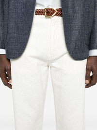 straight-leg jeans Highlights - White - Concealed fly and button fastening - Belt loops - Classic five pockets Imported Composition Outer: Cotton 100% Lining: Cotton 100% SIZE & FIT Model measurements Height 6 ft 0 in(1.84 m) Bust/Chest 35.82 in(91 cm) Hips 37 in(94 cm) Waist 28.34 in(72 cm) FittingInformation Designed with a straight leg, these jeans allow for an unrestricted and comfortable fit over the leg Sturdy and hard-wearing, this denim piece offers no stretch