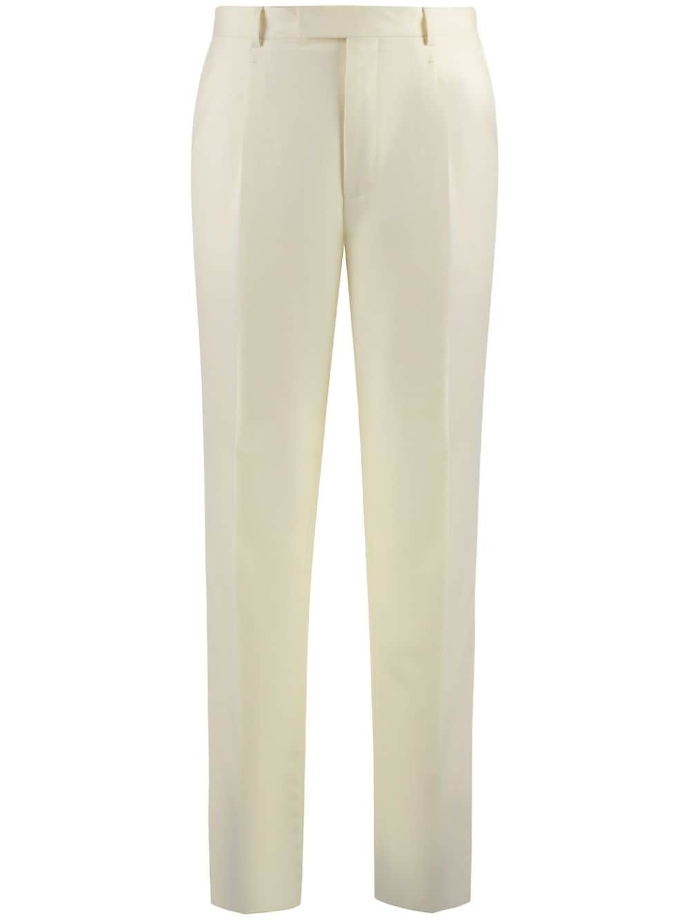 straight-leg tailored trousers Highlights - Ecru - Wool-cotton blend - Concealed front fastening - Belt loops - Pressed crease - Two side inset pockets - Two rear jetted pockets - Straight leg Imported Composition Cotton 100%, Wool 100%, Viscose 100%