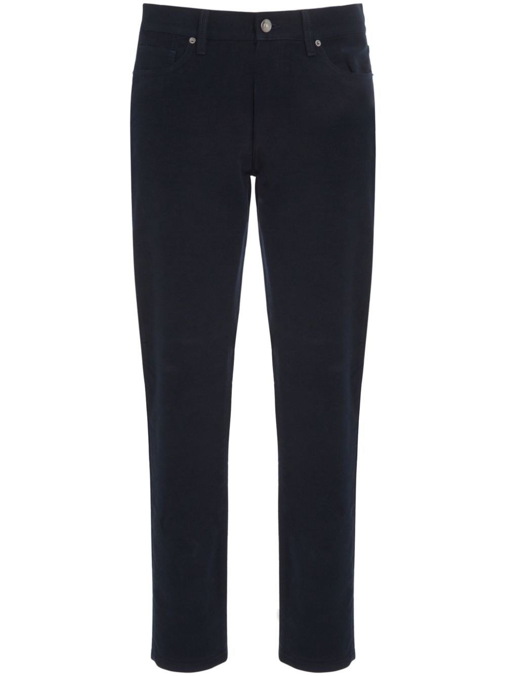 straight-leg trousers Highlights - Navy blue - Concealed fly and button fastening - Classic five pockets - Belt loops - Logo patch to the rear Imported Composition Cotton 100% Washing instructions Read Manufacturer Guidelines