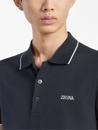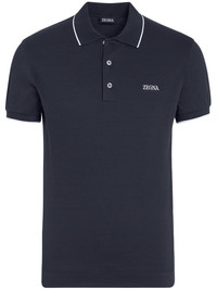 stretch-cotton polo shirt Highlights - Navy blue - Stretch-cotton - Embroidered logo at the chest - Striped edge - Polo collar - Front button placket - Short sleeves - Straight hem Imported Composition Cotton 95%, Spandex/Elastane 5% SIZE & FIT Measurement CHEST 37.79 in(96 cm)