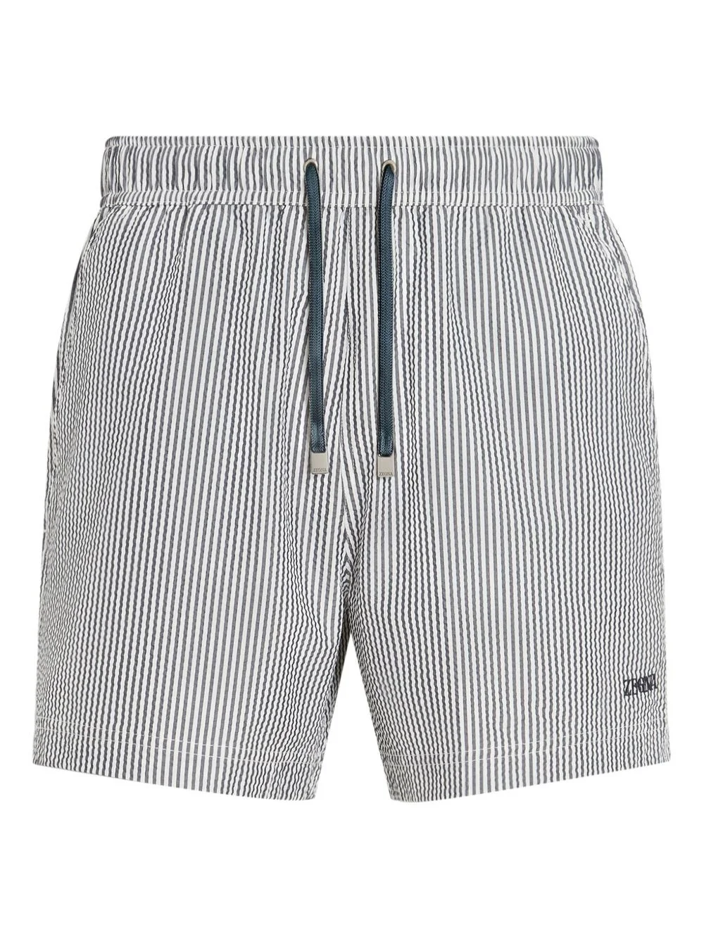 striped swim shorts Highlights - Blue - Elasticated drawstring waistband - Seersucker texture - Two side slit pockets - Stripe print - Embroidered logo - Be mindful to try on swimwear over your own garments. Made in Italy Composition Cotton 38%, Polyester 31%, Polyamide 27%, Elastane 4% Washing instructions Read Manufacturer Guidelines