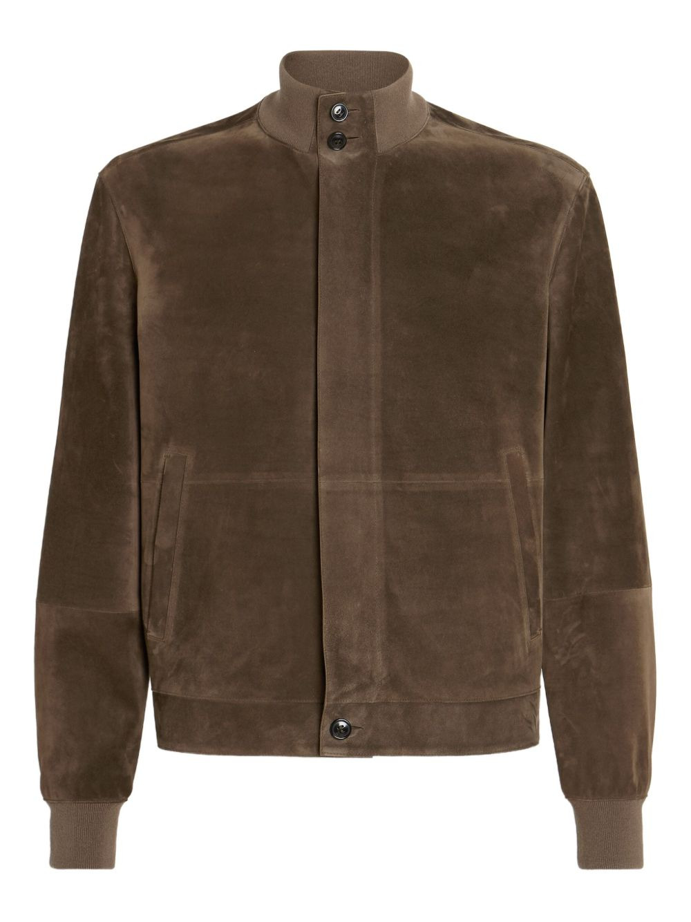 suede leather blouson Highlights - Brown - Calf leather - Ribbed cuffs - High neck - Snap button fastening - Welt pockets Made in Italy Composition Calf Leather 100% Washing instructions Read Manufacturer Guidelines