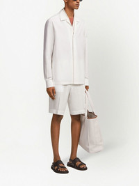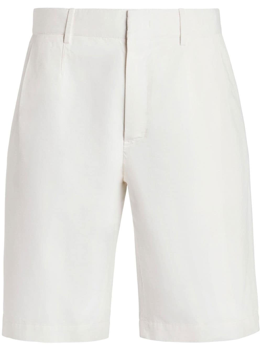 Summer cotton-linen chino shorts white cotton-linen blend concealed front fastening belt loops knee-length two rear flap pockets Imported Composition Cotton 71%, Linen/Flax 29% SIZE & FIT Measurement INSIDE LEG 10.23 in(26 cm) FRONT RISE 11.02 in(28 cm) HIPS 43.7 in(111 cm) FittingInformation Designed for a straight-leg, allowing for an unrestricted and comfortable fit over the leg Made from a midweight non-stretch fabric