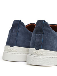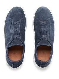 Triple Stitch slip-on sneakers Take a step towards your dream casual ensembles. All it takes are these Triple Stitch low-top sneakers from Ermenegildo Zegna to step-up your looks. Put your best foot forward. Highlights - Aegean blue - Suede - Branded insole - Pull-tab at the heel - Round toe - Flat rubber sole Made in Italy Composition Lining: Leather 100% Outer: Suede 100% Sole: Rubber 100% SIZE & FIT Measurement Sole height 0.78 in(2 cm) HEEL 0.98 in(2.5 cm)