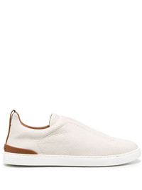 Triple Stitch low-top sneakers Highlights - Light beige/caramel brown - Calf leather - Flat rubber sole - Branded heel counter - Slip-on style Made in Italy Composition Sole: Rubber 100% Outer: Calf Leather 100% Lining: Calf Leather 100% SIZE & FIT Measurement HEEL 0.98 in(2.5 cm) Sole height 0.78 in(2 cm)