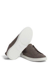Triple Stitch sneakers Highlights - Taupe brown - Slip-on style - Pull-tab at the heel - Branded insole - Flat rubber sole Made in Italy Composition Sole: Rubber 100% Lining: Cashmere 100% Outer: Linen/Flax 40%, Cotton 40%, Bovine Split Leather 20%