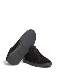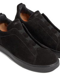 Triple Stitch™ Sneakers Highlights - Black - Calf suede - Slip-on style - Pull-tab at the heel - Debossed logo to the front - Signature triple-crossed elastic detail - Round toe - Padded ankle - Branded leather insole - Flat rubber sole - This piece comes complete with a protective dust bag. Made in Italy Composition Outer: Calf Leather 100% Sole: Rubber 100% Lining: Calf Leather 100% SIZE & FIT Measurement Sole height 0.78 in(2 cm)