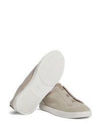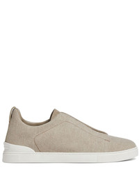 Triple Stitch sneakers Highlights - Taupe grey - Calf leather - Cotton-cashmere blend - Pull-tab at the heel - Slip-on style - Round toe - Branded insole - Flat rubber sole Made in Italy Composition Outer: Cashmere 58%, Cotton 27%, Calf Leather 15% Sole: Rubber 100% Lining: Calf Leather 100%