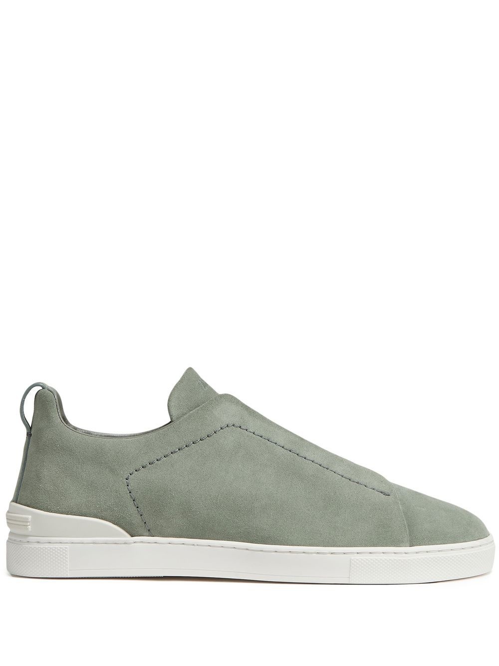 Triple Stitch suede sneakers light green leather calf suede round toe branded insole round toe front lace-up fastening flat rubber sole Made in Italy Composition Lining: Leather 100% Outer: Calf Suede 100% Sole: Rubber 100% SIZE & FIT Measurement HEEL 0.98 in(2.5 cm) Sole height 0.78 in(2 cm)
