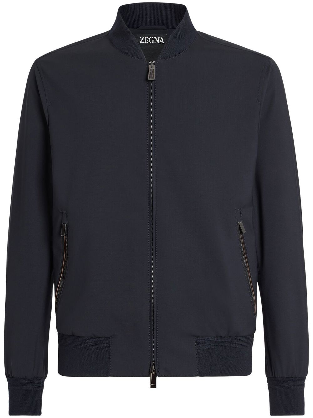 Trofeo Elements wool bomber jacket Highlights - Navy blue - Trofeo wool - Front zip fastening - Band collar - Long sleeves - Elasticated cuffs - Elasticated hem Made in Italy Composition Lining: Polyester 100% Outer: Wool 100%