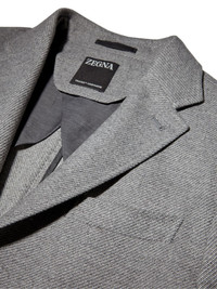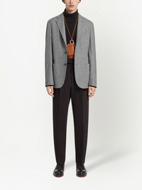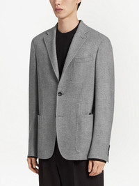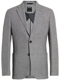 Trofeo single-breasted cashmere jacket medium grey Trofeo wool-cotton-cashmere blend fine ribbed tailored design melange effect notched lapels front button fastening chest welt pocket two side patch pockets English rear vents Made in Italy Composition Outer: Wool 96%, Cashmere 3%, Elastane 1% Lining: Cotton 53%, Cupro 47%