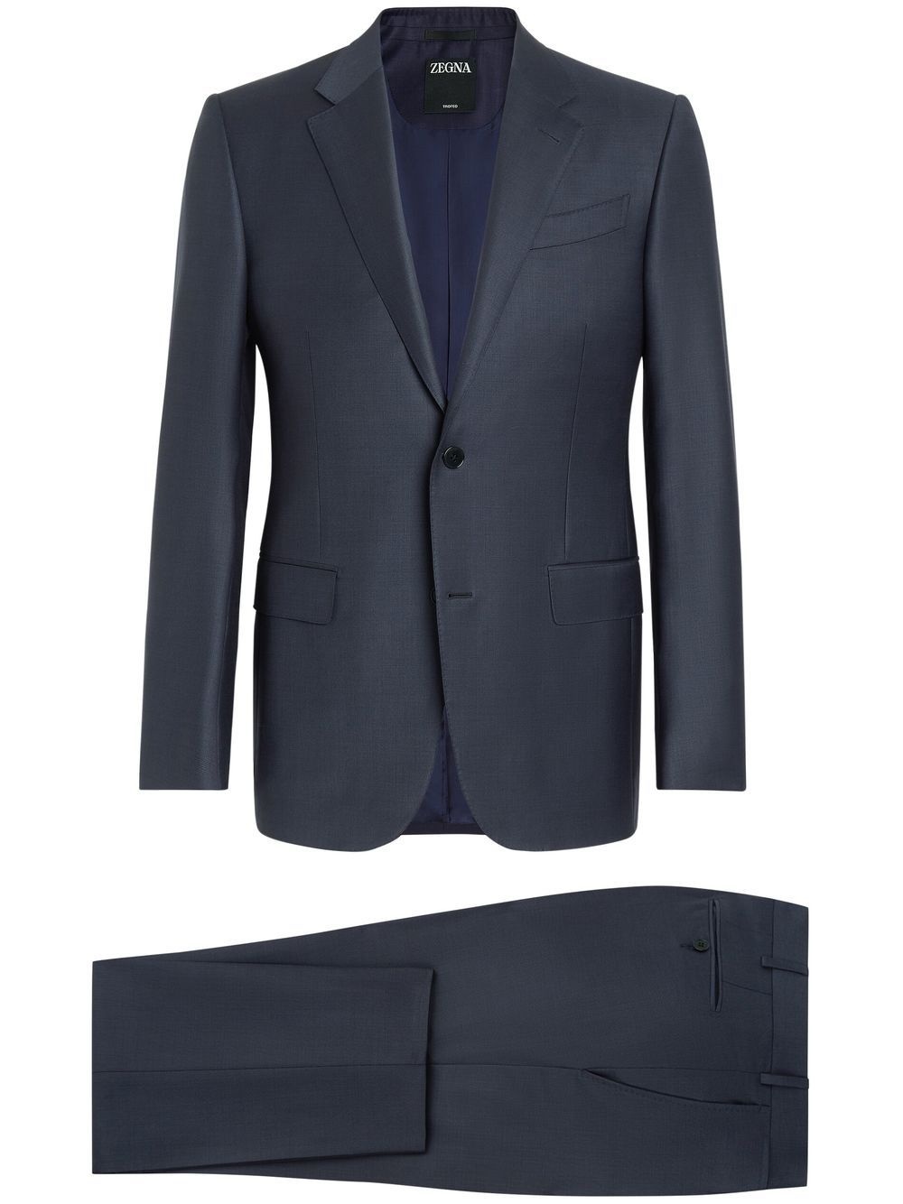 Trofeo single-breasted wool suit Crafted from Zegna's superfine signature Trofeo™ - an Australian merino wool that has longer and more elasticated fibres than conventional wools - this single-breasted suit highlights the brand's use of high-quality materials. Highlights - Midnight blue - Wool - Tailored cut - Notched lapels - Front button fastening - Chest welt pocket - Two front flap pockets - Long sleeves - Buttoned cuffs - Tailored cut - Concealed fly and button fastening - Pressed crease - Two diagonal pockets to the sides - Two rear jetted pockets - Belt loops Made in Italy Composition Wool 100%
