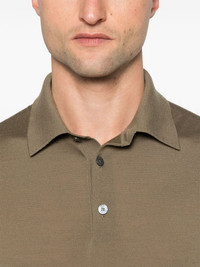 wool polo shirt Highlights - Sage green - Wool - Fine knit - Front button placket - Polo collar - Long sleeves - Ribbed cuffs and hem Made in Italy Composition Wool 100% SIZE & FIT Model measurements Height 6 ft 2 in(1.87 m) Bust/Chest 37.79 in(96 cm) Hips 37.79 in(96 cm) Waist 30.31 in(77 cm) Measurement CHEST 40.15 in(102 cm) SLEEVE LENGTH 25.19 in(64 cm) FittingInformation Designed for a relaxed fit, this polo shirt offers comfort and movement The ribbed hem offers a close, comfortable fit Made with a midweight knit, this piece offers some stretch