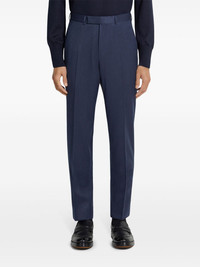 wool straight-leg trousers Highlights - Blue - Wool - Concealed front zip fastening - Belt loops - Straight leg - Two side slit pockets - Two rear welt pockets Imported Composition Wool 100%