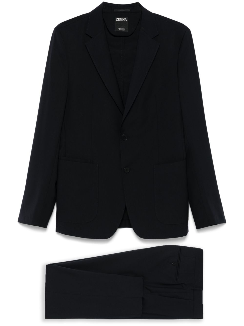 wool suit Highlights - Midnight blue - Front button fastening - Concealed front button, hook and zip fastening - English rear vents - Two diagonal pockets to the sides Imported Composition Outer: Wool 100% Lining: Polyester 100% SIZE & FIT Model measurements Height 6 ft 2 in(1.87 m) Bust/Chest 37.79 in(96 cm) Hips 37.79 in(96 cm) Waist 30.31 in(77 cm) FittingInformation Tailored for a slim fit, offering a comfortable fit that sits just away from the body The unfinished hems allow for the length to be altered Made from a midweight non-stretch fabric
