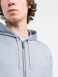 zip-front shell jacket Crafted for performance as well as style, this jacket from Ermenegildo Zegna boasts a lightweight finish. The blue design is made from a soft blend of wool and silk for an elegant appeal. Imported Composition Outer: Calf Leather 100%, Wool 51%, Silk 49% Lining: Wool 51%, Silk 49% SIZE & FIT Model measurements Height 6 ft 2 in(1.88 m) Bust/Chest 37.79 in(96 cm) Hips 36.22 in(92 cm) Waist 31.1 in(79 cm) Washing instructions Machine Wash