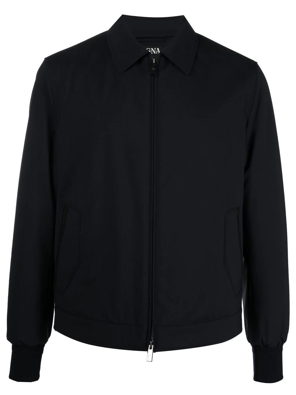 zip-front shirt jacket navy blue wool-cashmere blend classic collar front zip fastening long sleeves ribbed cuffs two side slit pockets straight hem Made in Italy Composition Lining: Polyester 100%, Viscose 90%, Cashmere 10% Outer: Wool 100% Washing instructions Dry Clean Only