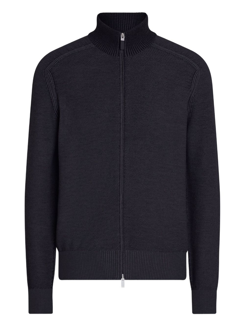 zip-up cardigan Highlights - Navy blue - Zip fastening - High neck - Long sleeves - Ribbed hem Made in Italy Composition Cashmere 70%, Silk 30% Washing instructions Read Manufacturer Guidelines