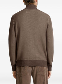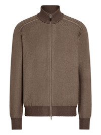 zip-up cardigan Highlights - Brown - Ribbed hem - Ribbed cuffs - High neck - Front zip fastening Made in Italy Composition Cashmere 70%, Mulberry Silk 30% Washing instructions Read Manufacturer Guidelines