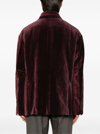 cotton blazer Highlights - Burgundy - Front button fastening - Chest welt pocket - Two front flap pockets - English rear vents Imported Composition Outer: Cotton 100% Lining: Cotton 100%, Silk 100% SIZE & FIT Model measurements Height 6 ft 2 in(1.87 m) Bust/Chest 37.79 in(96 cm) Hips 37.79 in(96 cm) Waist 30.31 in(77 cm) FittingInformation Designed to be unstructured, offering a loose fit throughout The vented hem offers movement at the rear Made from a midweight non-stretch fabric