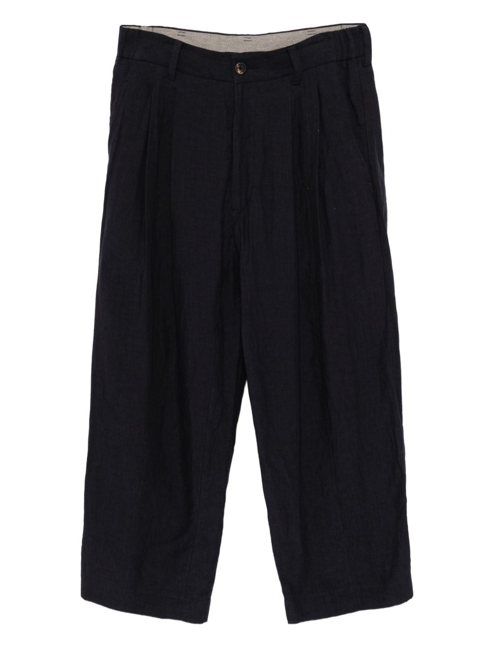 linen trousers Highlights - Dark blue - Front button and zip fastening - Two side slash pockets - Two rear jetted pockets Imported Composition Linen/Flax 100% Washing instructions Dry Clean Only