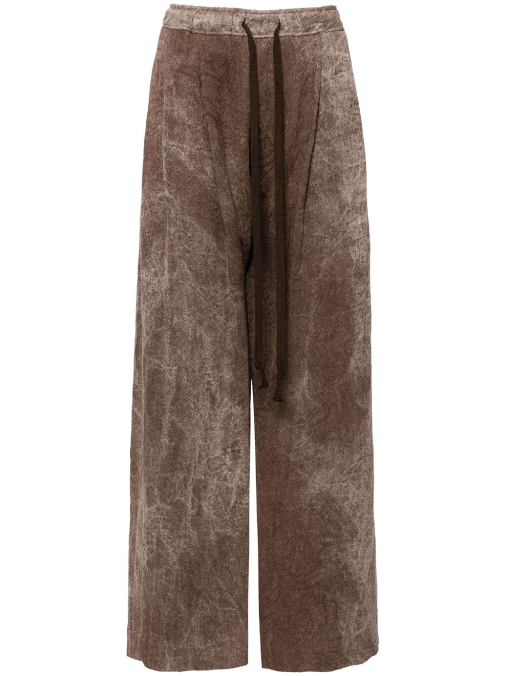 stonewashed print drawstring trousers Highlights - Beige - Cotton-linen blend - Stonewashed print - Elasticated drawstring waistband - Two slip side pockets - Two rear button-fastening pockets - Straight hem Imported Composition Lining: Cupro 100%, Cotton 50% Outer: Linen/Flax 100%