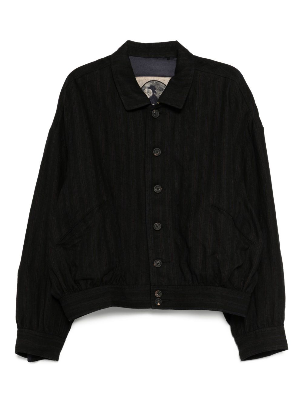 striped spread-collar jacket Highlights - Black - Front button fastening - Two front jetted pockets - Buttoned cuffs - Side button fastening Imported Composition Lining: Cupro 50%, Cotton 50% Outer: Linen/Flax 100% SIZE & FIT Model measurements Height 6 ft 1 in(1.85 m) Bust/Chest 35.43 in(90 cm) Hips 36.22 in(92 cm) Waist 28.74 in(73 cm) FittingInformation Designed to be unstructured, offering a loose fit throughout The adjustable tabs allow for fitted preferences Made from a midweight non-stretch fabric Washing instructions Dry Clean Only