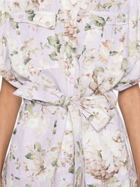Acacia belted floral-print linen playsuit