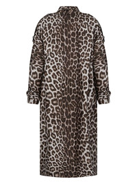 animal print coat Highlights - Animalier brown - Wool-silk blend - Animal print - Concealed front fastening - Two side flap pockets - High neck - Epaulettes - Belted cuffs Imported Composition Lining: Viscose 75%, Silk 25% Outer: Silk 51%, Wool 49%