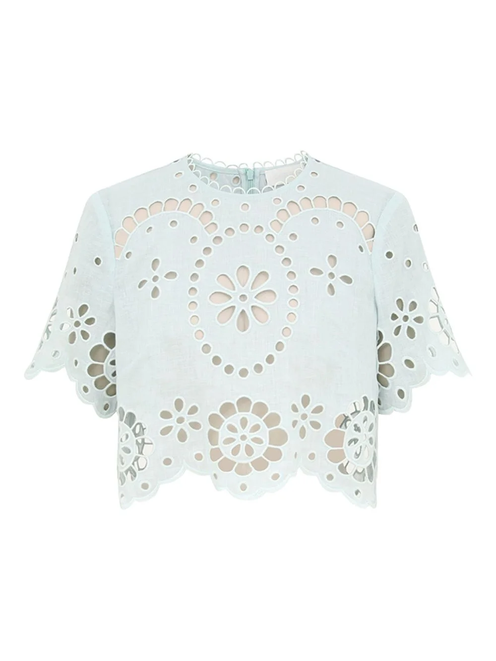 Awaken embroidered blouse Highlights - Blue - Floral embroidery - Scalloped hem - Round neck - Short sleeves - Zip fastening Imported Composition Linen/Flax 100%, Polyester 100% Washing instructions Dry Clean Only