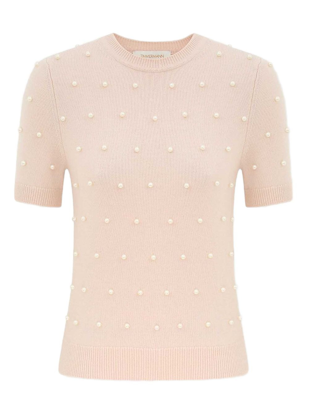 beaded sweater Highlights - Nude - Bead detail - Ribbed trims - Round neck - Short sleeves Made in Italy Composition Merino 100% Washing instructions Read Manufacturer Guidelines