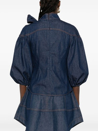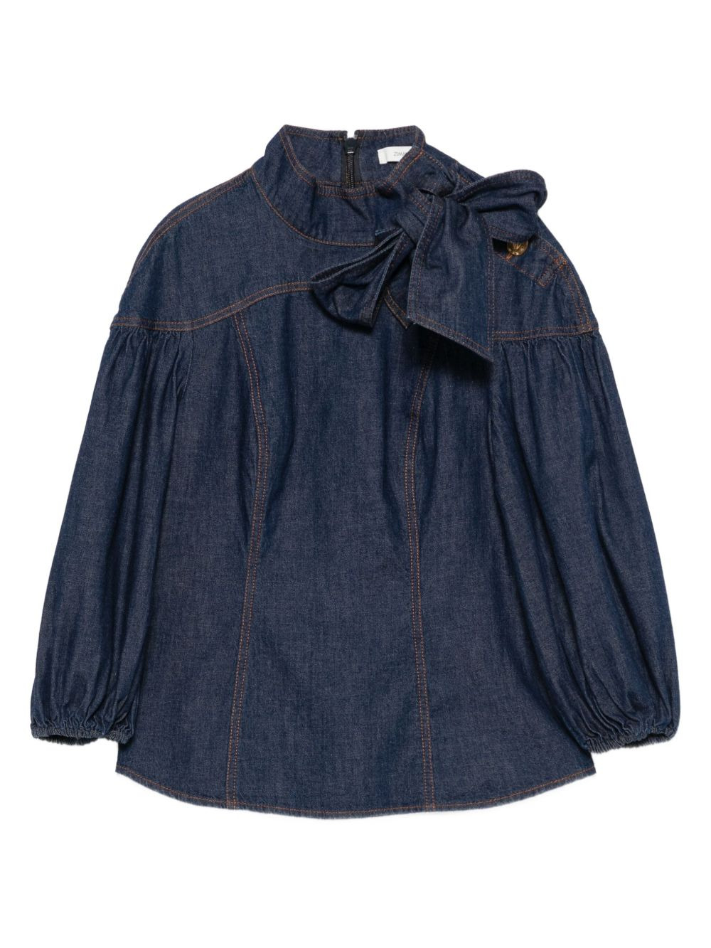 bow-detailed puff-sleeve blouse Highlights - Indigo blue - Puff sleeves - Bow detail - Mock neck - Rear zip fastening Imported Composition Cotton 100% SIZE & FIT Model measurements Height 5 ft 11 in(1.8 m) Bust/Chest 32.67 in(83 cm) Hips 36.22 in(92 cm) Waist 24.4 in(62 cm) Washing instructions Machine Wash
