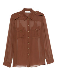 button-detailed pocket shirt Highlights - Brown - Sheer fabric - Button fastening - Long sleeves - Flap pockets - Gold-tone buttons Imported Composition Silk 100% Washing instructions Read Manufacturer Guidelines