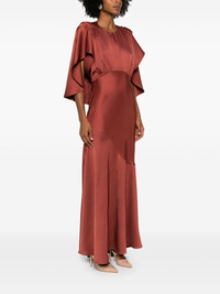 cape-insert round-neck maxi dress Highlights - Chestnut brown - Twill weave - Satin finish - Rear cape insert - Round neck - Rear hook and eye fastening - Concealed side hook and zip fastening - Empire line - Flared skirt - Keyhole detail to the rear - Curved hem - Long length Imported Composition Viscose 100% SIZE & FIT Model measurements Height 5 ft 11 in(1.8 m) Bust/Chest 32.67 in(83 cm) Hips 35.82 in(91 cm) Waist 25.98 in(66 cm) FittingInformation Designed for a loose fit at the chest with a close fit over the waist and hips Made from a midweight non-stretch fabric Washing instructions Dry Clean Only