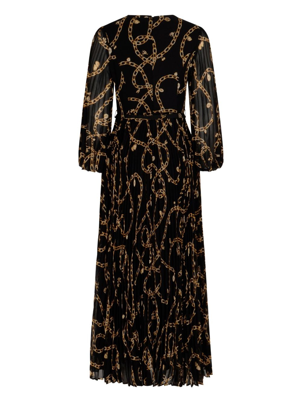 chain-print pleated-skirt midi dress Highlights - Black - Pleated fabric - Chain print - Long sleeves - Belted waist - Gold-tone buckle Imported Composition Recycled Polyester 100%