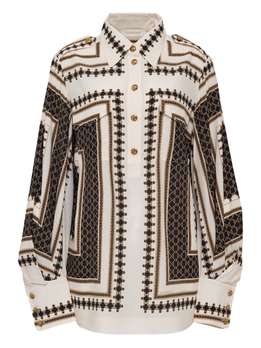 chain-print pocket blouse
