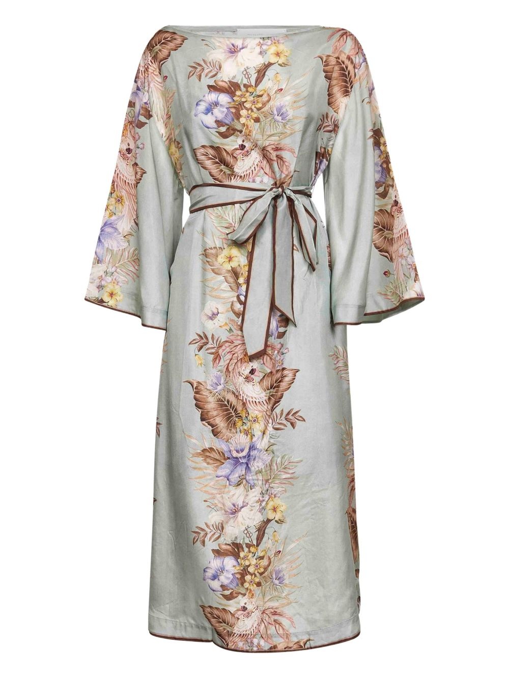 Coco floral-print midi dress Highlights - Blue - Floral print - Flared sleeves - Boat neck - Detachable belt Imported Composition Silk 100%, Recycled Polyester 86%, Elastane 14% Washing instructions Dry Clean Only