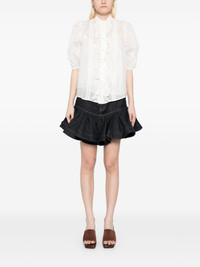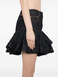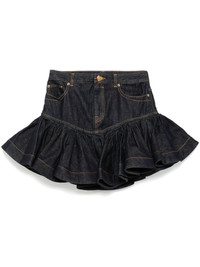 crush denim frill mini skirt Highlights - Indigo blue - Front button and zip fastening - Belt loops - Two side patch pockets - Draped detailing Imported Composition Cotton 74%, Rayon 26% SIZE & FIT Model measurements Height 5 ft 9 in(1.76 m) Bust/Chest 31.1 in(79 cm) Hips 35.03 in(89 cm) Waist 24.4 in(62 cm) Measurement HIPS 37 in(94 cm) LENGTH 16.92 in(43 cm) WAIST 29.92 in(76 cm) FittingInformation This mini-length skirt is intended to be worn high on the waist Sturdy and hard-wearing, this denim piece offers no stretch Washing instructions Machine Wash