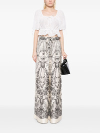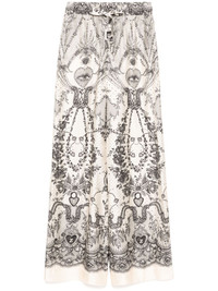 crush draw waist trousers Highlights - Ivory/black - Elasticated drawstring waistband - Two side inset pockets - All-over graphic print Imported Composition Silk 100% SIZE & FIT Model measurements Height 5 ft 9 in(1.76 m) Bust/Chest 31.1 in(79 cm) Hips 35.03 in(89 cm) Waist 24.4 in(62 cm) FittingInformation Designed with a wide-leg cut, these trousers allow for a close fit at the waist and offer a loose and roomy fit over the leg Made from a lightweight non-stretch fabric
