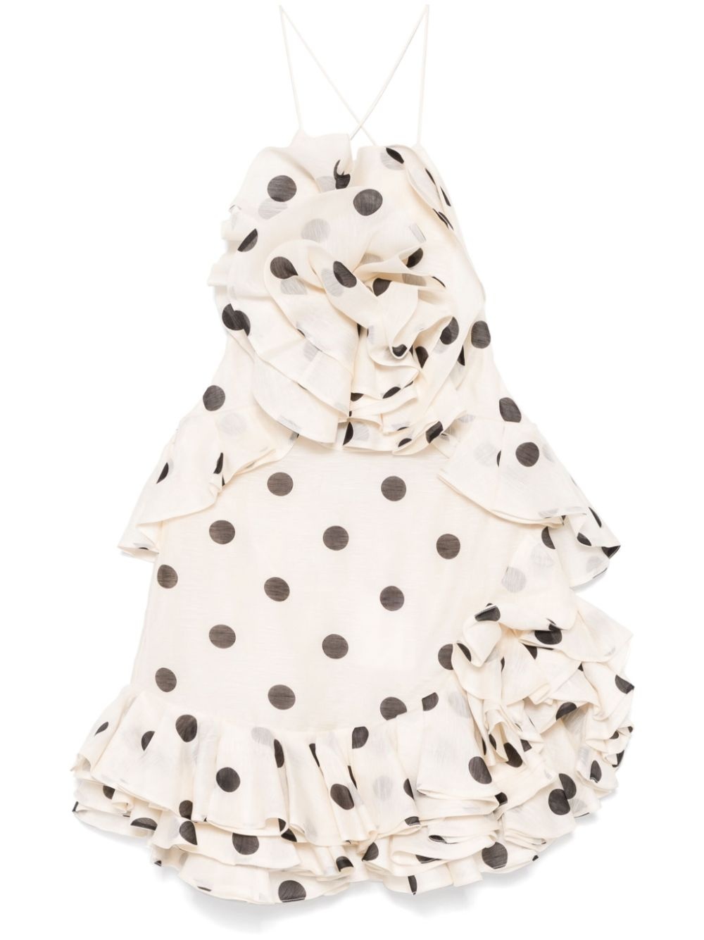 Crush mini skirt Highlights - White/black - Linen-silk blend - Concealed side hook and zip fastening - Polka dot print - Halterneck - Floral applique - Ruffled trim - Rear criss-cross straps - Low back - Side slit - Full lining - Asymmetric hem Imported Composition Outer: Linen/Flax 55%, Silk 45% Lining: Cotton 100% SIZE & FIT Model measurements Height 5 ft 11 in(1.8 m) Bust/Chest 31.49 in(80 cm) Hips 36.61 in(93 cm) Waist 24.4 in(62 cm) Measurement HIPS 37.79 in(96 cm) LENGTH 29.52 in(75 cm) WAIST 29.13 in(74 cm) FittingInformation Designed for a slim fit that sits just away from the body offering a close yet comfortable fit The adjustable shoulder straps allow for a preferred fit when worn Made from a midweight non-stretch fabric Washing instructions Dry Clean Only