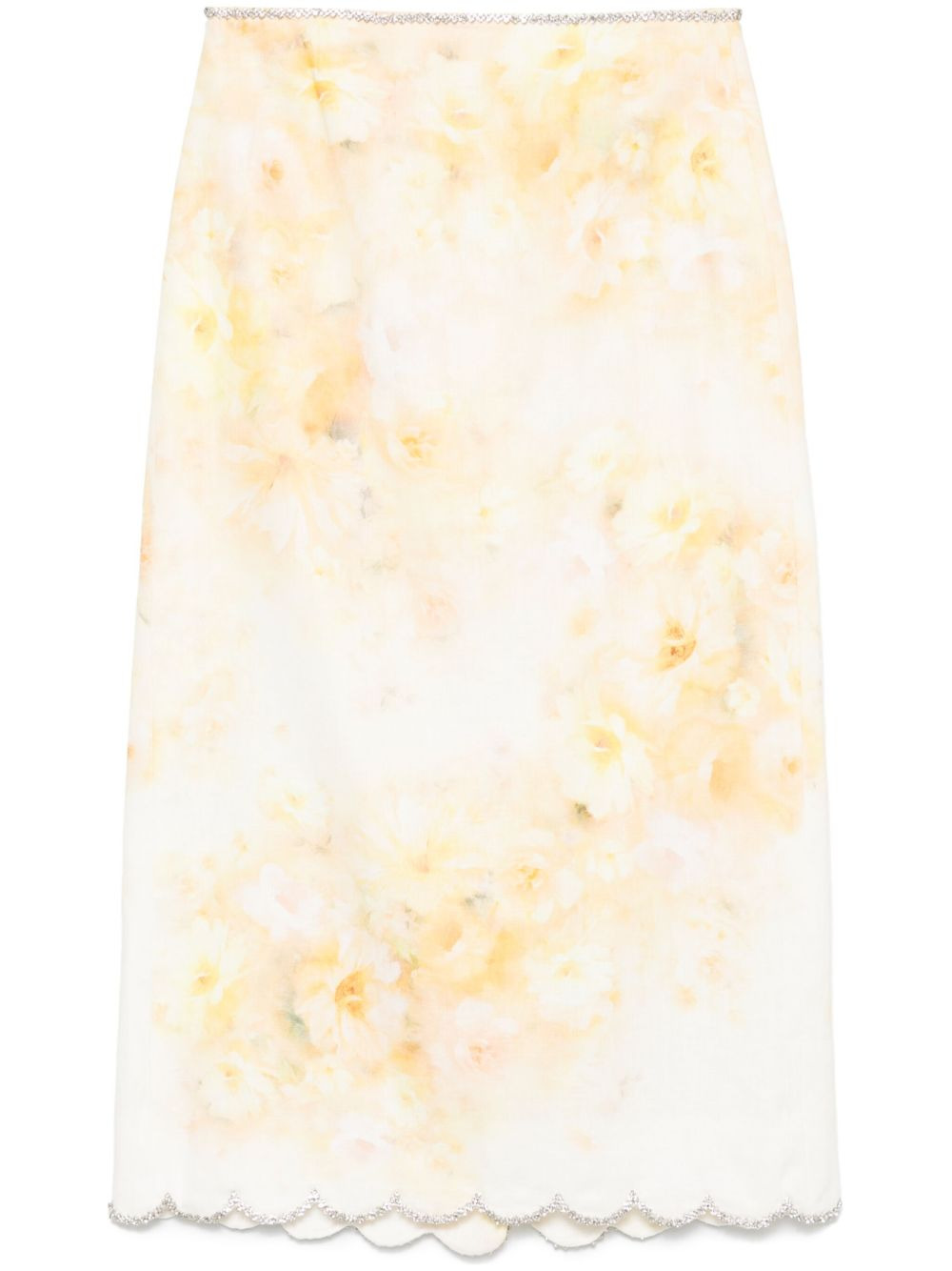 Crush scalloped midi skirt Highlights - Light yellow - Concealed rear zip fastening - Rear slit - Crystal embellishment - Dart detailing Imported Composition Outer: Linen/Flax 100% Lining: Cotton 100% SIZE & FIT Model measurements Height 5 ft 11 in(1.8 m) Bust/Chest 31.49 in(80 cm) Hips 36.61 in(93 cm) Waist 24.4 in(62 cm) FittingInformation This midi-length skirt is intended to be worn just below the waist The vented hem offers movement at the rear Made from a midweight non-stretch fabric