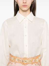 Crush shirt Highlights - Light beige - Front button fastening - Buttoned cuffs - Pointed flat collar - Long sleeves Imported Composition Ramie 100% SIZE & FIT Model measurements Height 5 ft 10 in(1.78 m) Bust/Chest 33.85 in(86 cm) Hips 36.61 in(93 cm) Waist 26.77 in(68 cm) Measurement SLEEVE LENGTH 24.4 in(62 cm) LENGTH 27.95 in(71 cm) WAIST 53.54 in(136 cm) FittingInformation Designed to be unstructured, offering a loose fit throughout Made from a lightweight non-stretch fabric Washing instructions Dry Clean Only