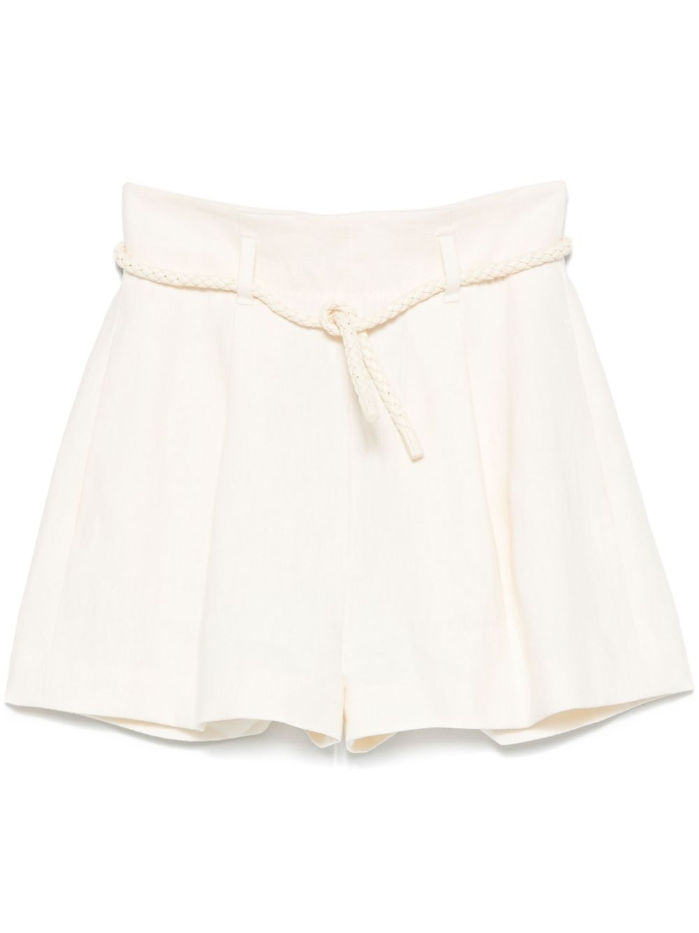 Crush shorts Highlights - Light beige - Concealed rear hook and zip fastening - Belt loops - Two side inset pockets - Detachable belt Imported Composition Linen/Flax 100% SIZE & FIT Model measurements Height 5 ft 11 in(1.8 m) Bust/Chest 32.67 in(83 cm) Hips 35.82 in(91 cm) Waist 25.98 in(66 cm) FittingInformation Designed for a loose fit, offering comfort and movement when worn The tie fastening gives an adaptable and personalised fit Made from a midweight non-stretch fabric Washing instructions Dry Clean Only