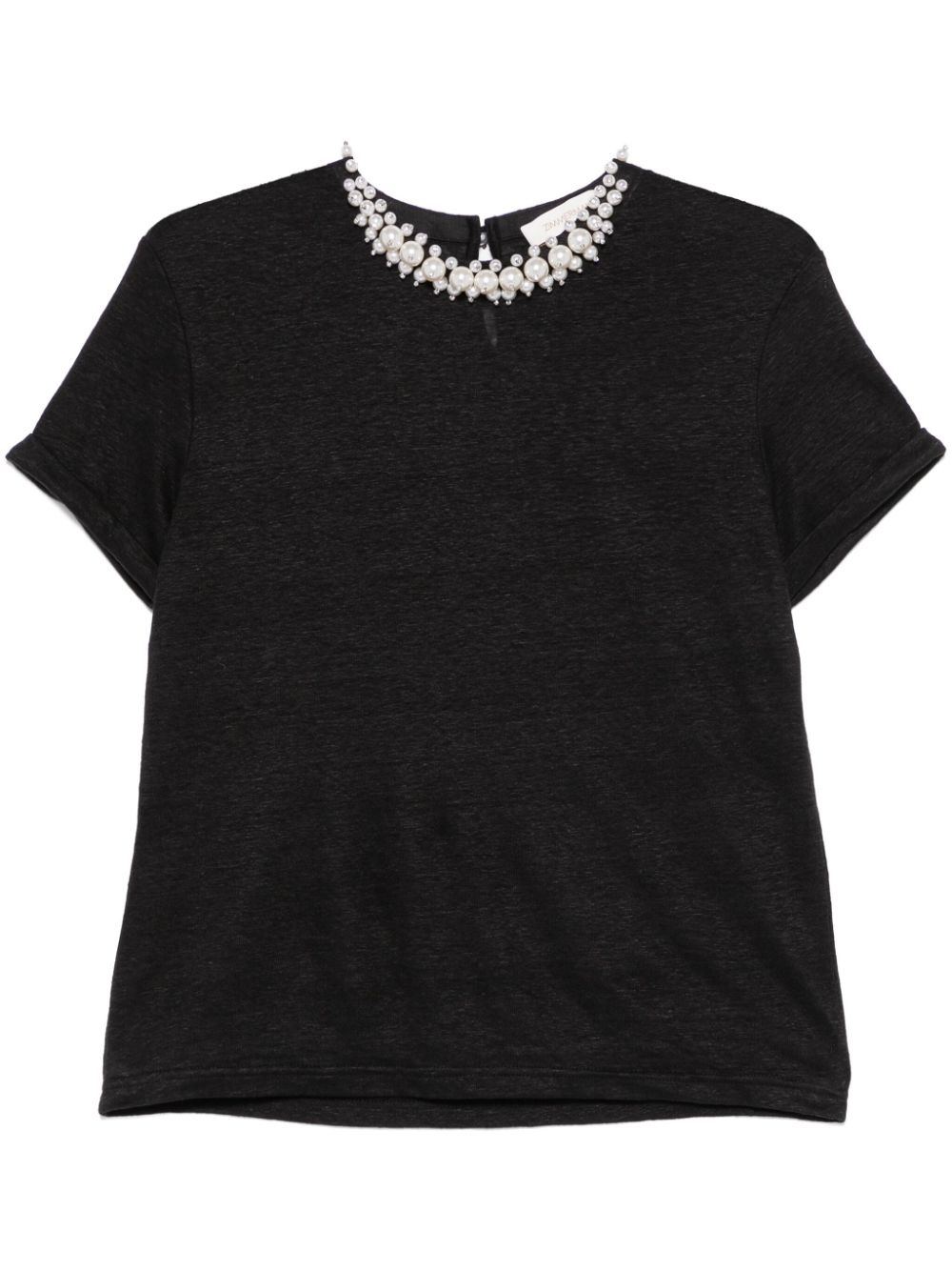 Crush T-shirt Highlights - Black - Single rear button fastening - Faux-pearl embellishment Imported Composition Linen/Flax 100% SIZE & FIT Model measurements Height 5 ft 11 in(1.8 m) Bust/Chest 31.49 in(80 cm) Hips 35.82 in(91 cm) Waist 24.8 in(63 cm) FittingInformation Designed for a relaxed fit, this piece allows for comfort and movement when worn Made from a midweight non-stretch fabric, this piece offers minimal elasticity when worn