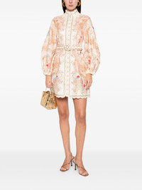 Daylight floral-print mini Dress Highlights - Beige and multicolour - Floral print - High neck - Long sleeves - Belt - Lace trim Imported Composition Linen/Flax 100%, Polyester 100% SIZE & FIT Model measurements Height 5 ft 10 in(1.78 m) Bust/Chest 33.46 in(85 cm) Hips 36.22 in(92 cm) Waist 23.22 in(59 cm) Washing instructions Dry Clean Only