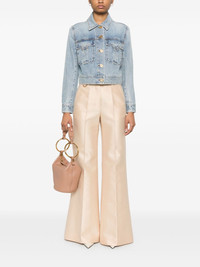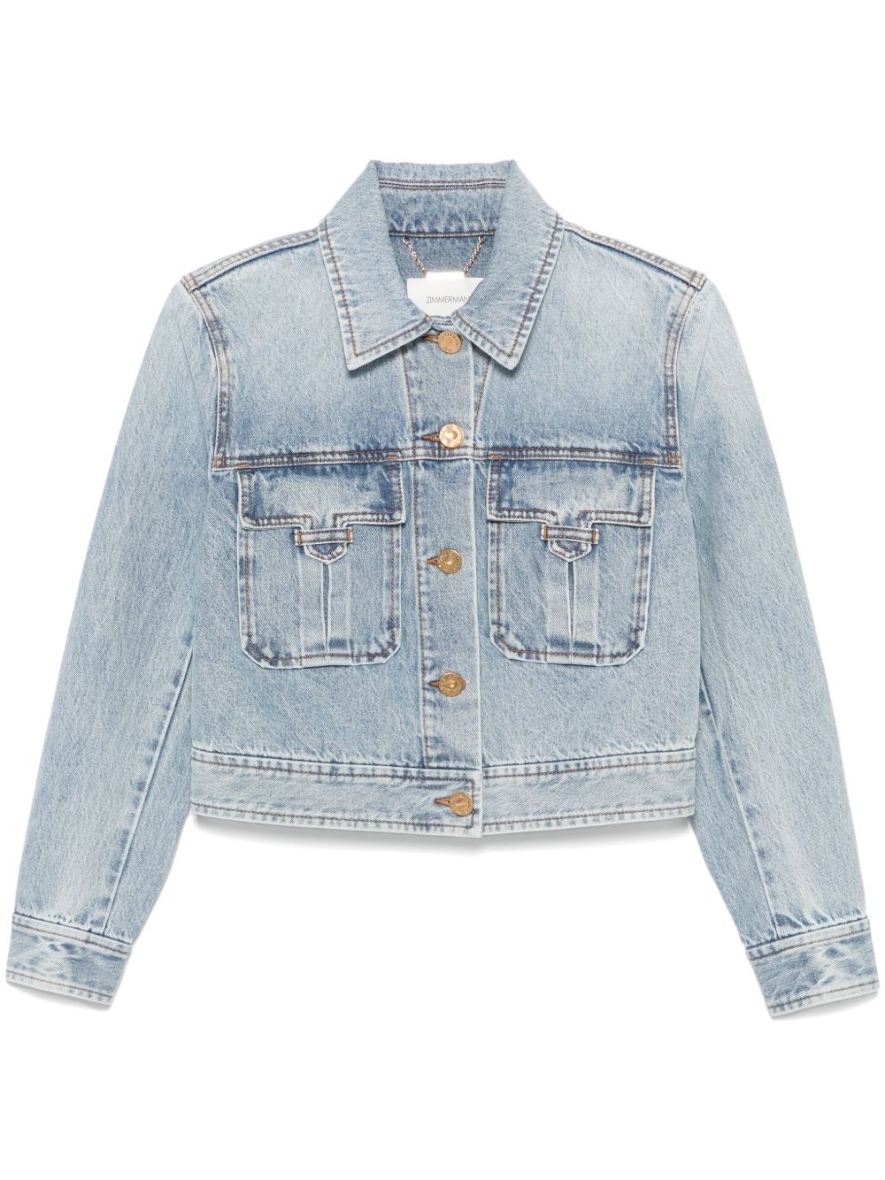 denim jacket Highlights - Light blue - Front button fastening - Two chest flap pockets - Classic collar - Long sleeves Imported Composition Cotton 100% SIZE & FIT Model measurements Height 5 ft 10 in(1.78 m) Bust/Chest 32.67 in(83 cm) Hips 35.43 in(90 cm) Waist 23.22 in(59 cm) FittingInformation Designed for a relaxed fit, this piece allows for comfort and movement when worn Cropped in length Sturdy and hard-wearing, this denim piece offers no stretch Washing instructions Dry Clean Only