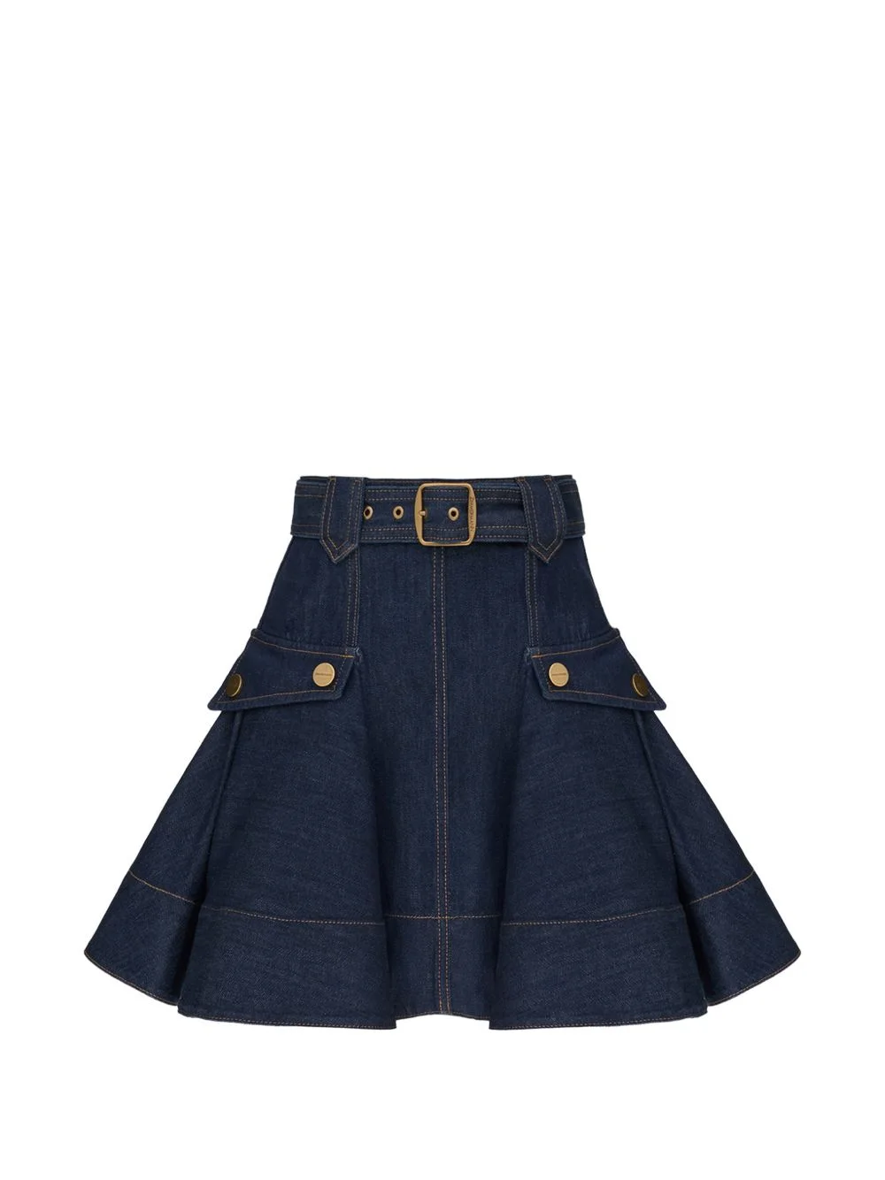 denim mini skirt Highlights - Blue - Belt detail - Flap pockets - Gold-tone hardware Imported Composition Cotton 100% Washing instructions Machine Wash