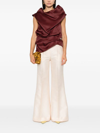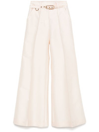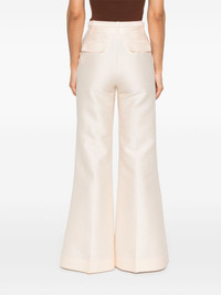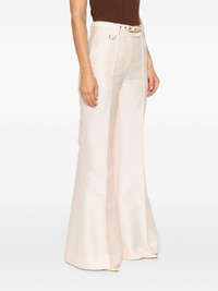 Eden trousers Highlights - Light pink - Wool-silk blend - Concealed front button, hook and zip fastening - Belted waist - Belt loops - Raised seam detail - Two diagonal pockets to the sides - D-ring findings - Two rear flap pockets - Flared hem - Wide leg Imported Composition Outer: Wool 92%, Polyester 55%, Cotton 45%, Silk 8% Lining: Viscose 75%, Silk 25% SIZE & FIT Model measurements Height 5 ft 11 in(1.8 m) Bust/Chest 33.07 in(84 cm) Hips 37.4 in(95 cm) Waist 25.19 in(64 cm) FittingInformation Designed with a flared hem, these trousers allow for a close fit at the waist with a slim fit over the leg and widening towards the hem The belt offers adjustability for fitted preferences Made from a midweight non-stretch fabric
