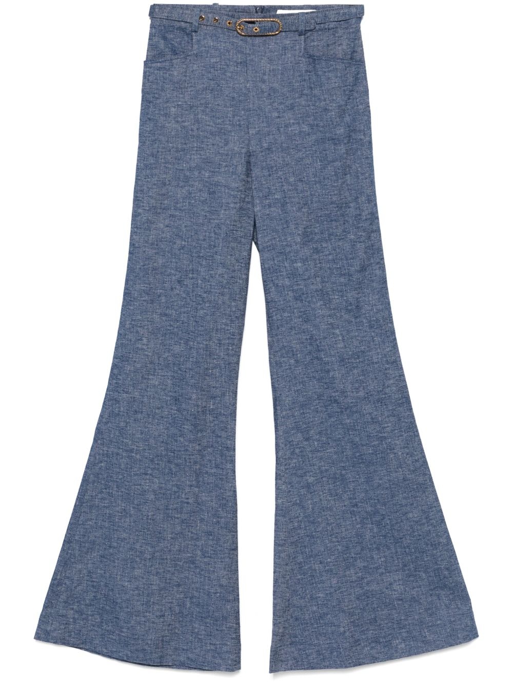 Eden trousers Highlights - Indigo blue - Rear zip fastening - Detachable and adjustable waist belt Imported Composition Outer: Linen/Flax 51%, Cotton 47%, Elastane 2% Lining: Viscose 75%, Silk 25% SIZE & FIT Model measurements Height 5 ft 11 in(1.8 m) Bust/Chest 33.07 in(84 cm) Hips 37.4 in(95 cm) Waist 25.19 in(64 cm) FittingInformation Designed with a flared hem, these trousers allow for a close fit at the waist with a slim fit over the leg and widening towards the hem The belt offers adjustability for fitted preferences Constructed from stretch denim, this piece offers a stretch fit with durability This piece fits small – take one size up Washing instructions Dry Clean Only