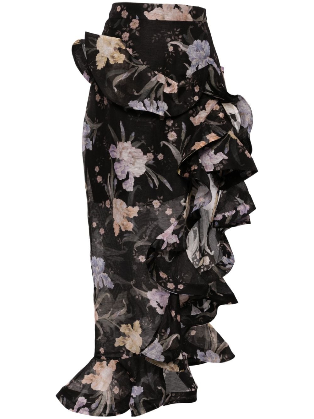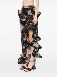 Eden waterfall skirt Highlights - Black - Cotton - Semi-sheer construction - Asymmetric design - All over floral print - Ruffled detailing - Concealed side zip fastening Made in Italy Composition Lining: Cotton 100% Outer: Linen/Flax 55%, Silk 45% SIZE & FIT Model measurements Height 5 ft 9 in(1.76 m) Bust/Chest 31.1 in(79 cm) Hips 35.03 in(89 cm) Waist 24.4 in(62 cm) Measurement HIPS 37.79 in(96 cm) LENGTH 40.55 in(103 cm) WAIST 27.55 in(70 cm) FittingInformation Designed with an asymmetric hem, this skirt is intended to be worn just below the waist Made from a midweight non-stretch fabric Washing instructions Dry Clean Only